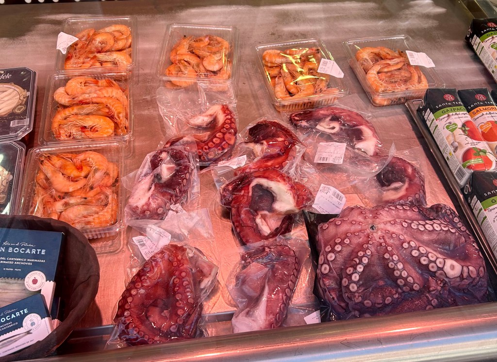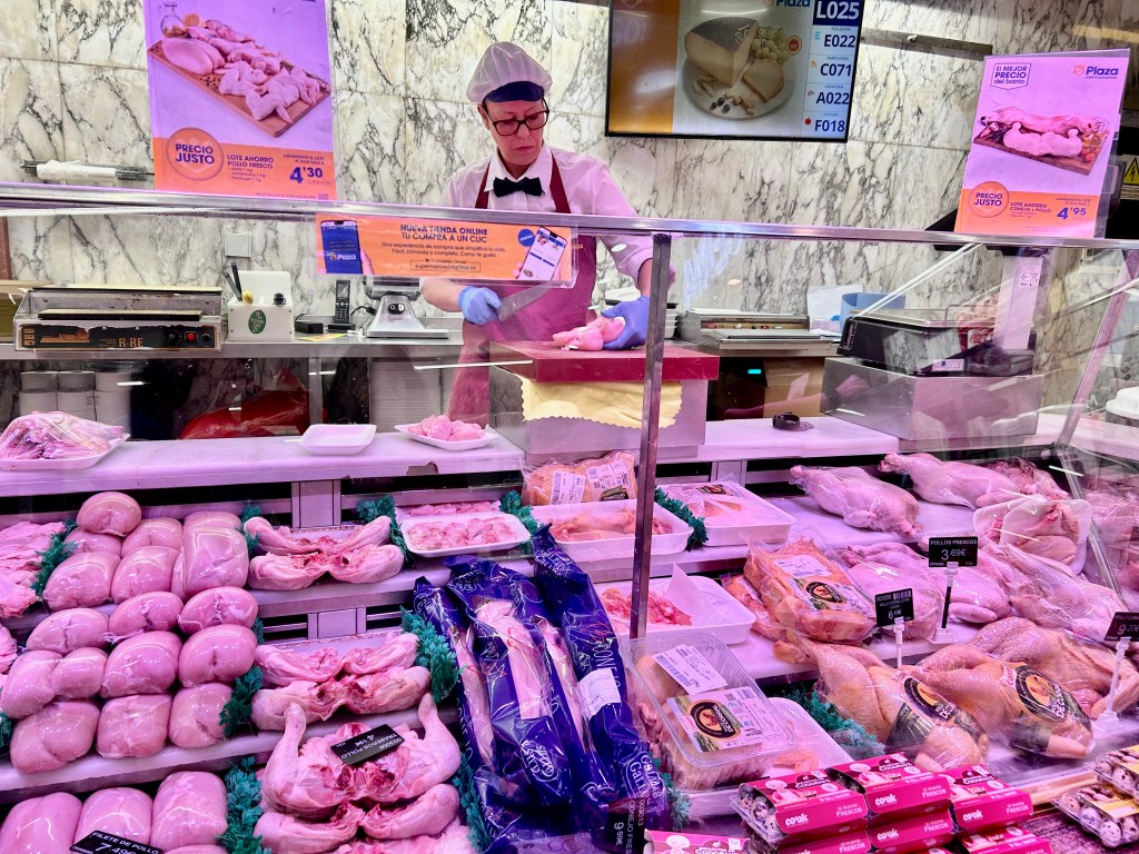The local markets go beyond just offering fresh ingredients – they help you prepare your meals, too. In the photo below, this woman skillfully cuts up the chicken to my specifications. Although not visible in the photo, someone is cutting up pork to the right for my cousin-in-law who made an amazing breaded pork dish, and to the left, someone is in charge of charcuterie. You can even find pre-cut bacon. Having my meat fresh and pre-cut is a huge time-saver when preparing nutritious family meals. It also ensures quality–my Spanish mother-in-law, for instance, never buys pre-ground meat. She insists on inspecting the meat before it’s ground to guarantee its freshness and quality.