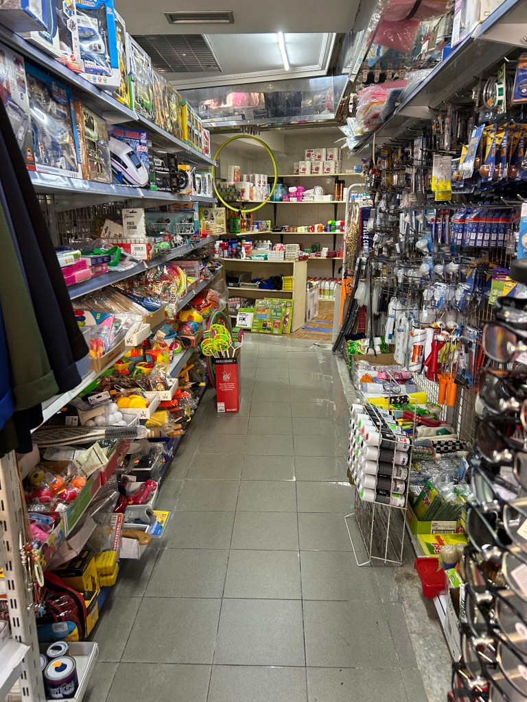 However, over the past two decades, Chinese-owned stores from the southeastern region of the People’s Republic of China have become an integral part of the neighborhood economy. Some shops are known for their variety (see photo below), often selling an eclectic mix of affordable items ranging from doormats and clothing to stationery, cleaning supplies, and batteries all under one roof. Other Chinese-owned shops include fruit stands or even serving Spanish cuisine. One difference between Spanish and Chinese stores is that Chinese stores will often open seven days a week and pack more merchandise into their spaces compared to their Spanish counterparts.
